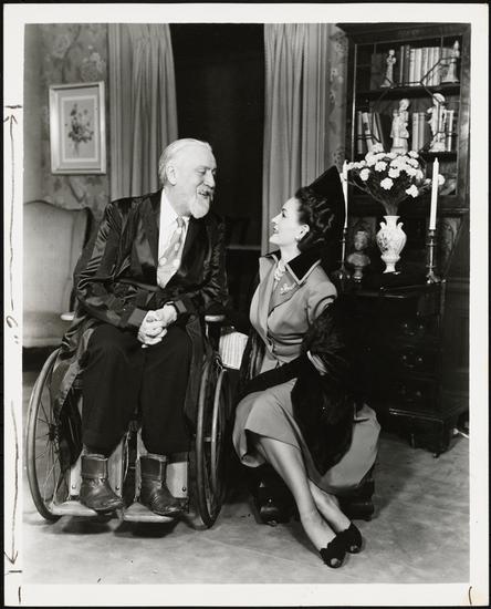 [Monty Woolley as Sheridan Whiteside and Carol Goodner as Lorraine Sheldon in "The Man Who Came to Dinner".]