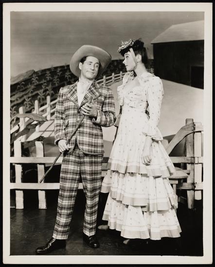 [Celeste Holm as Ado Annie Carnes and Lee Dixon as Will Parker in "Oklahoma!".]