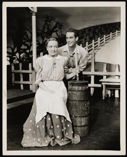 [Alfred Drake as Curly and Joan Roberts as Laurey in "Oklahoma!".]