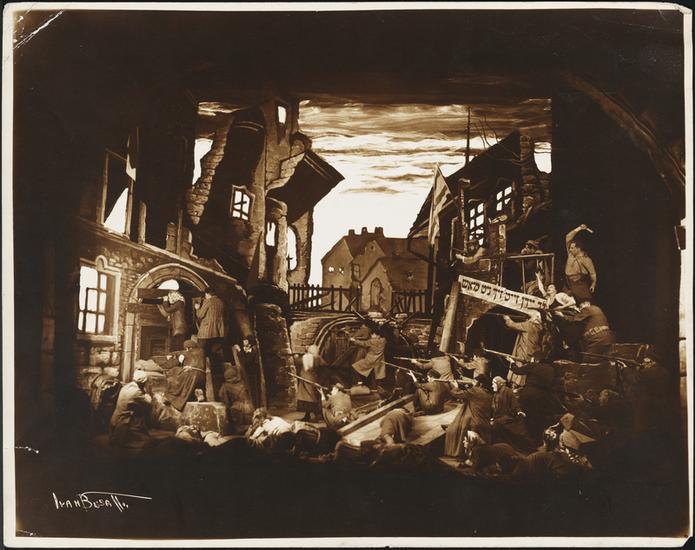 ["Miracle of the Warsaw Ghetto" theater still.]