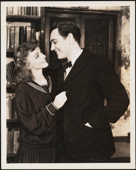 [Thelma Schnee as Bessie Watty and Richard Waring as Morgan Evans in "The Corn Is Green".]