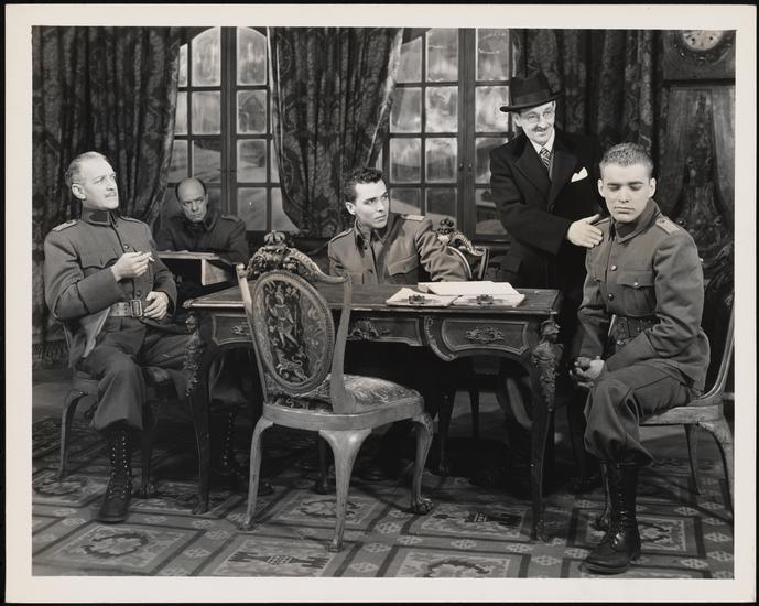 [Russell Collins as Major Hunter and William Eythe as Lieutenant Tonder in "The Moon is Down".]