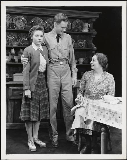 [William Prince as Private Quizz West and Aline MacMahon as Nell West in "The Eve of St. Mark".]