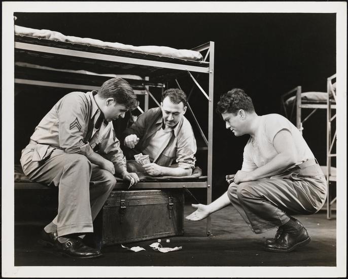 [James Monks as Private Francis Marion and William Prince as Private Quizz West in "The Eve of St. Mark".]