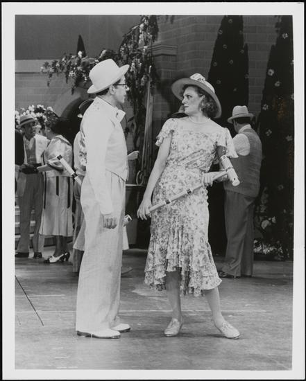 [Possibly Jane Summerhays as Lady Jaqueline Carstone and Robert Lindsay as Bill Snibson in "Me and My Girl".]