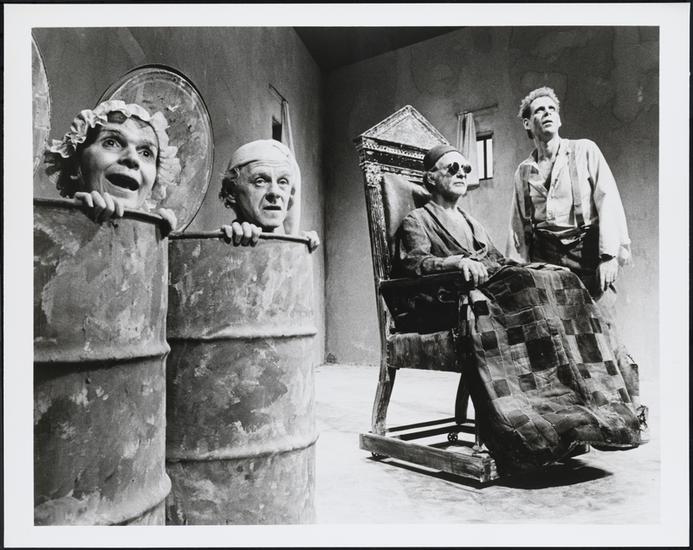 [Alice Drummond as Nell, James Greene as Nagg, Alvin Epstein as Hamm and Peter Evans as Clov in "Endgame".]