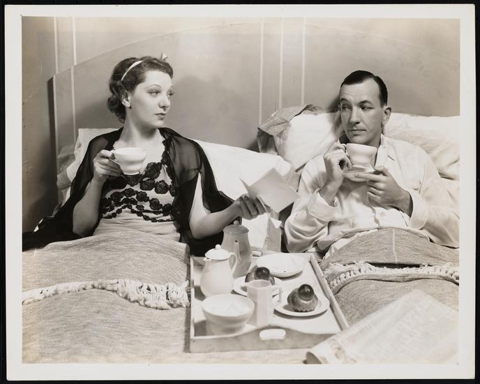 [Gertrude Lawrence as Lady Maureen Gilpin ("Piggy") and Noël Coward as Com. Peter Gilpin, R.N. in "Hands Across the Sea".]