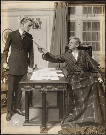 [An unidentified actor as Thomas Potter and an unidentified actor in the role of Henry Potter in "The Man Who Came Back".]