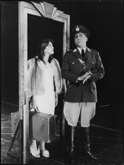 [David Cryer as Perón and Derin Altay as Eva Perón in "Evita".]