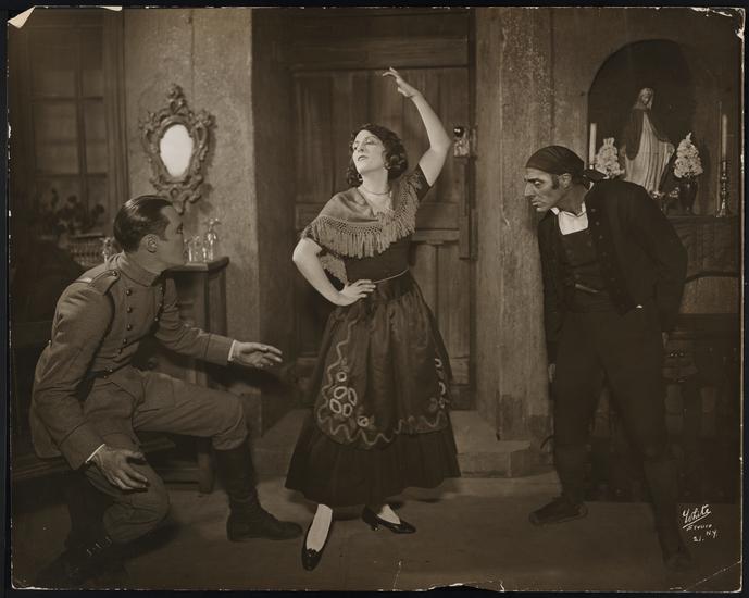 [Curtis Cooksey as A Soldier, Mary Nash as A Woman and José Ruben as A Man in "Thy Name is Woman".]