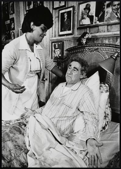 [John Batiste as Eddie and Jack Albertson as Willie Clark in "The Sunshine Boys".]