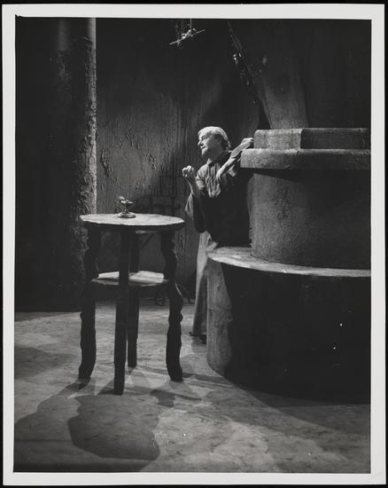 [Sarah Churchill as Queen Isabel and Maurice Evans in the title role of the Hallmark Hall of Fame television presentation of "King Richard II".]