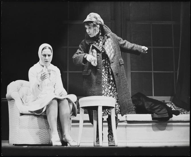 [Joan Hackett as Elaine Wheeler and Barbara Cason as Dr. Tracey Lake in "Night Watch".]