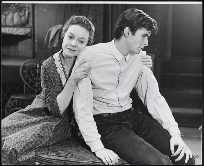 [Jo Van Fleet as Eliza Gant and Anthony Perkins as Eugene Gant in "Look Homeward, Angel".]
