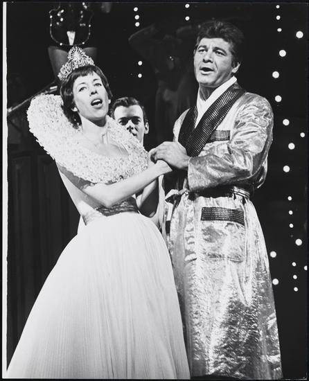 [Dick Shawn as Byron Prong and Carol Burnett as Hope Springfield in "Fade Out - Fade In".]