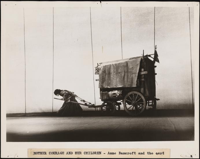 [Zohra Lampert as Kattrin and Anne Bancroft as the title role in "Mother Courage and Her Children".]