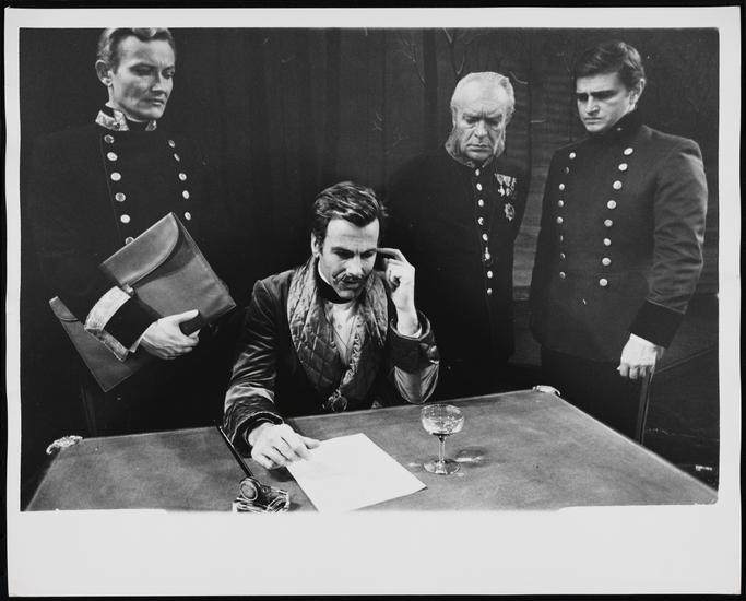 [Keene Curtis as Col. Mischa Oblensky, James Dukas as Stanitsin and Maximilian Schell as Alfred Redl in "A Patriot for Me".]