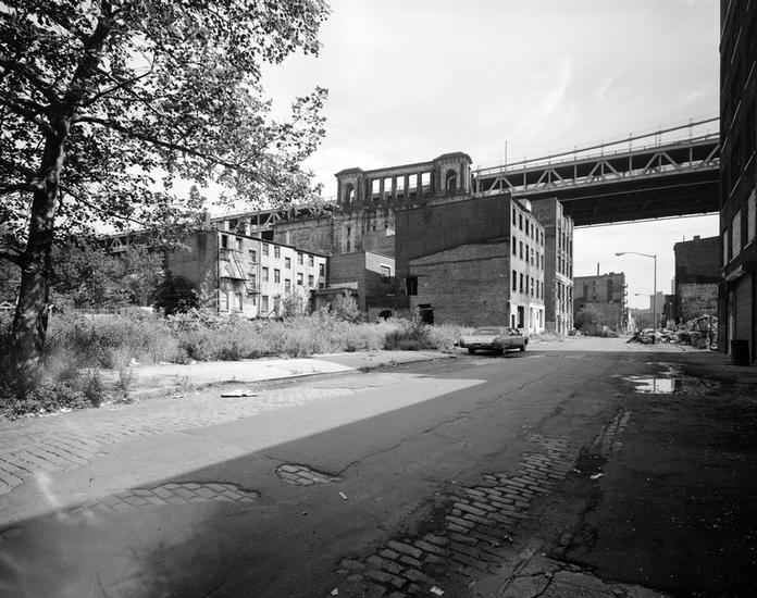 [Looking east on Cherry Street toward the Manhattan Bridge archway.]