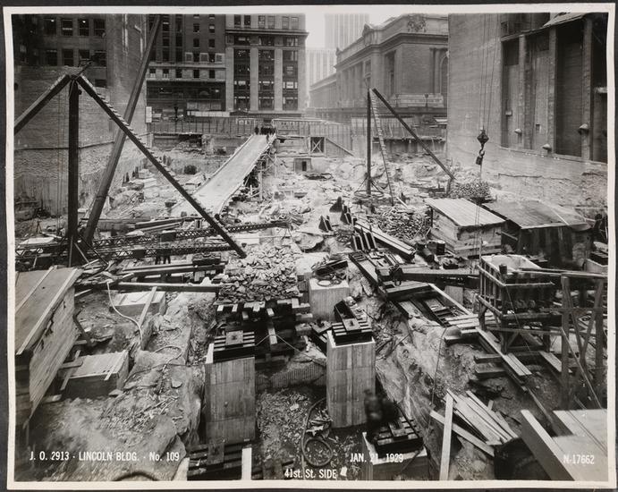 41st St. Side - Looking N.E. [Lincoln Building construction.]
