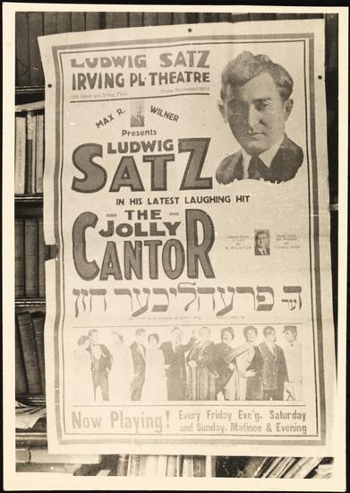 [Two men in front of theater poster for "The Jolly Cantor".]