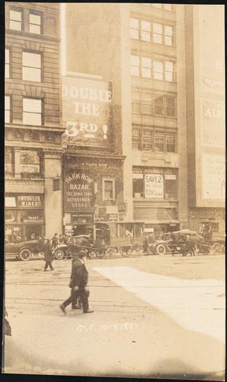 Street Scenes, etc. Showing Displays of Liberty Loan Posters during World War I [Billboards above stores including one for Liberty Loans.]