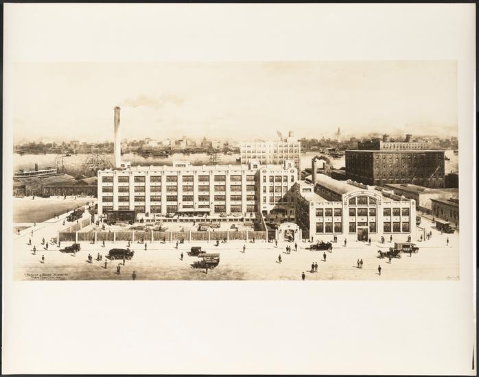 Doty refrigerating building. Watercolor rendering by Hughson Hawley, 1912.