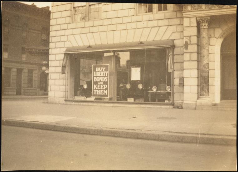 Street Scenes, etc. Showing Displays of Liberty Loan Posters during World War I [Liberty Loan window display.]