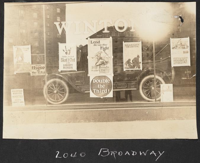 Street Scenes, etc. Showing Displays of Liberty Loan Posters during World War I [Liberty Loan posters at the Belleclaire Hotel.]