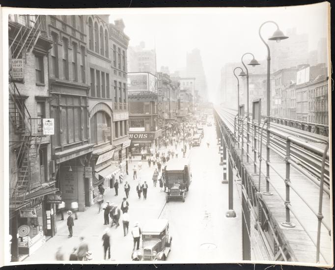 [West side of 6th Avenue looking south from 14th Street El station.]