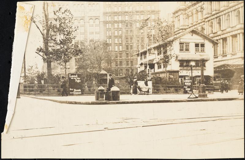 Street Scenes, etc. Showing Displays of Liberty Loan Posters during World War I [Liberty Loan signs on construction near Union Square.]