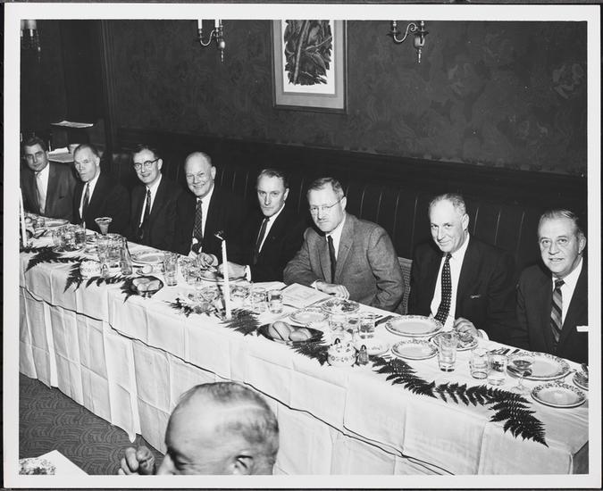 For 34 Years of Loyal Service - Eric S. Barron [Eric Barron with a group at a meal.]
