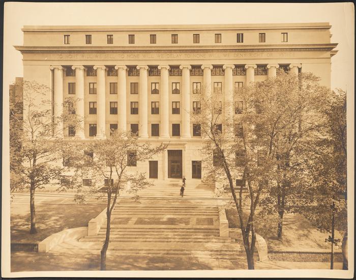 851 Grand Concourse. Bronx County Courthouse. Detail of west corner of building