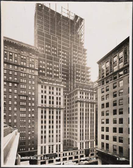 42nd St. Elevation, Looking S.E. [Lincoln Building construction.]