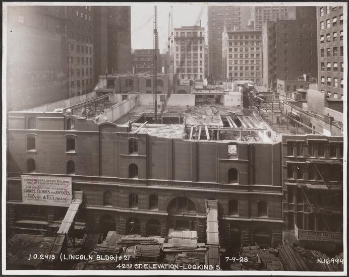 42nd St. Side - Looking S. [Lincoln Building construction.]