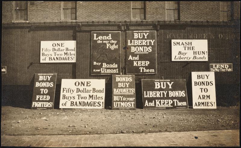 Street Scenes, etc. Showing Displays of Liberty Loan Posters during World War I [Liberty Loan signs.]