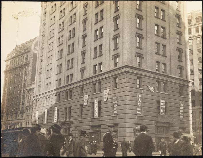 Street Scenes, etc. Showing Displays of Liberty Loan Posters during World War I [Entrance of the Astor Hotel.]