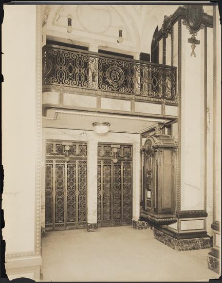 [Interior, elevator lobby with crown molding detail drawn in.]