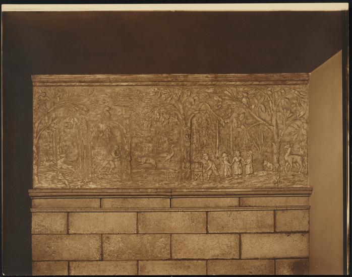 [Interior, elevator lobby with crown molding detail drawn in.]