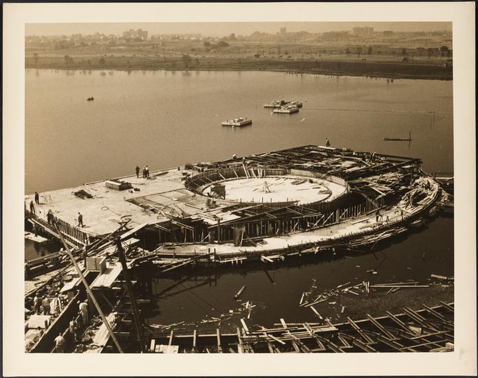 [Construction of Fountain Lake amphitheater, New York World's Fair site.]