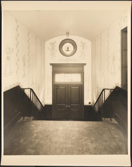 301 East 52nd Street. Kips Bay Boys Club, detail mural decoration on stair vestibule.
