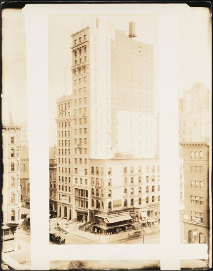 44th Street and Fifth Avenue, northeast corner. Delmonico's. Showroom for Jackson Heights Apartments