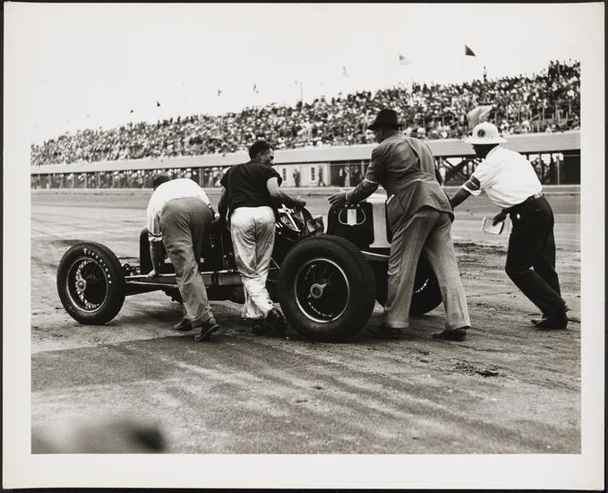 [Westbury. Roosevelt Raceways. Vanderbilt Race. Pit area.]