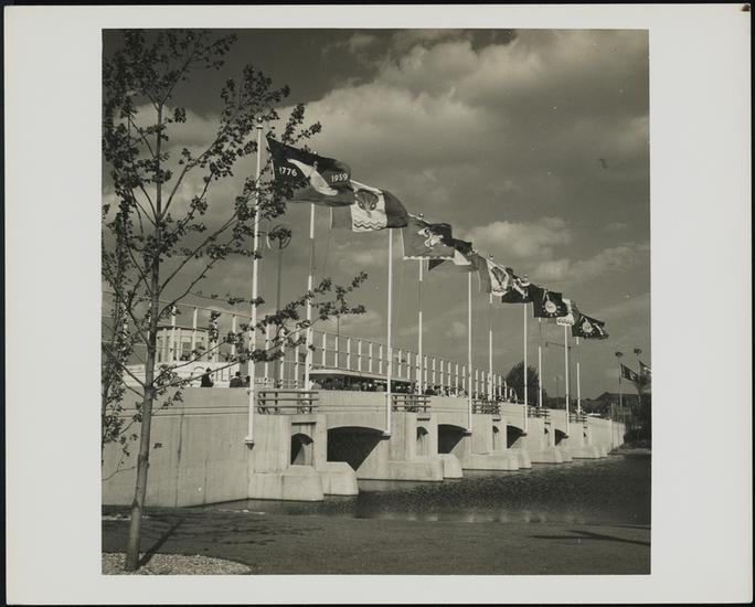 New York Worlds Fair. Bridge from Administration Building. Construction view