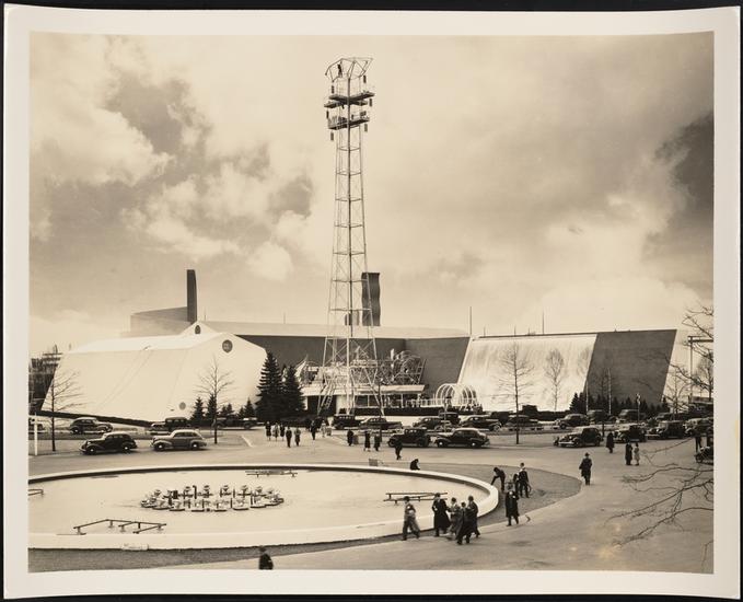 [New York World's Fair. Electric Utilities Building with fountain in foreground.]