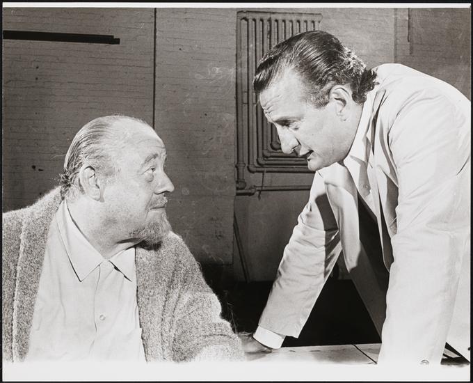 [Burl Ives as Dr. Leonard Cook and Keir Dullea as Dr. Jim Tennyson in "Dr. Cook's Garden".]