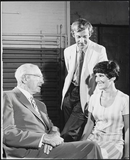 [Director George Abbott with Tom Bosley and Babara Minkus during rehearsals for "The Education of H*Y*M*A*N K*A*P*L*A*N".]