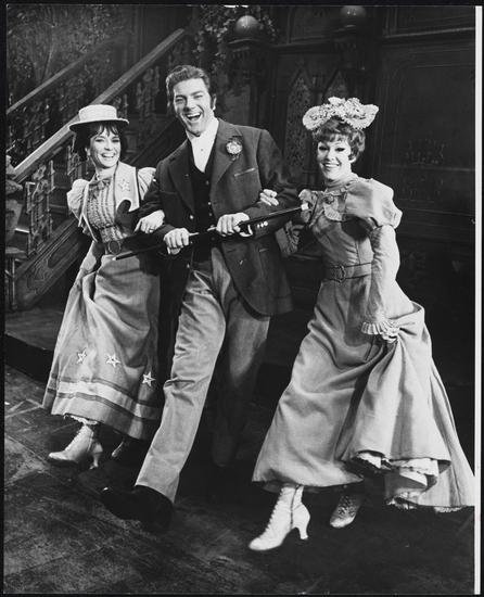 [Helen Gallagher as Bessie Legg, Tommy Rall as Petey Boyle, and Elaine Cancilla as Fiona Quigley in "Cry for Us All".]