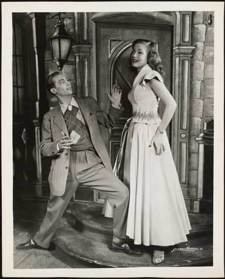 [Kenny Buffett as "Judge" Rogers and Patricia Wymore as Pamela Scott in "Hold It!".]
