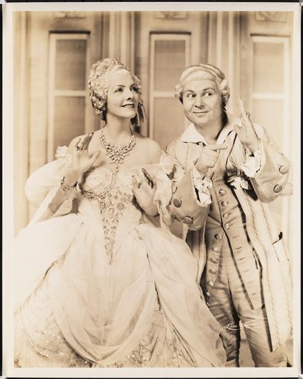 [Frances Williams as Mme. La Comtesse du Barry with an unidentified actor in the role of The King of France in "Du Barry Was a Lady".]