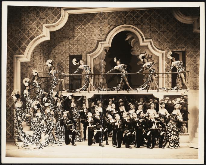 [Unidentified actress and Sid Cassel as Luis in "Hold on to Your Hats".]